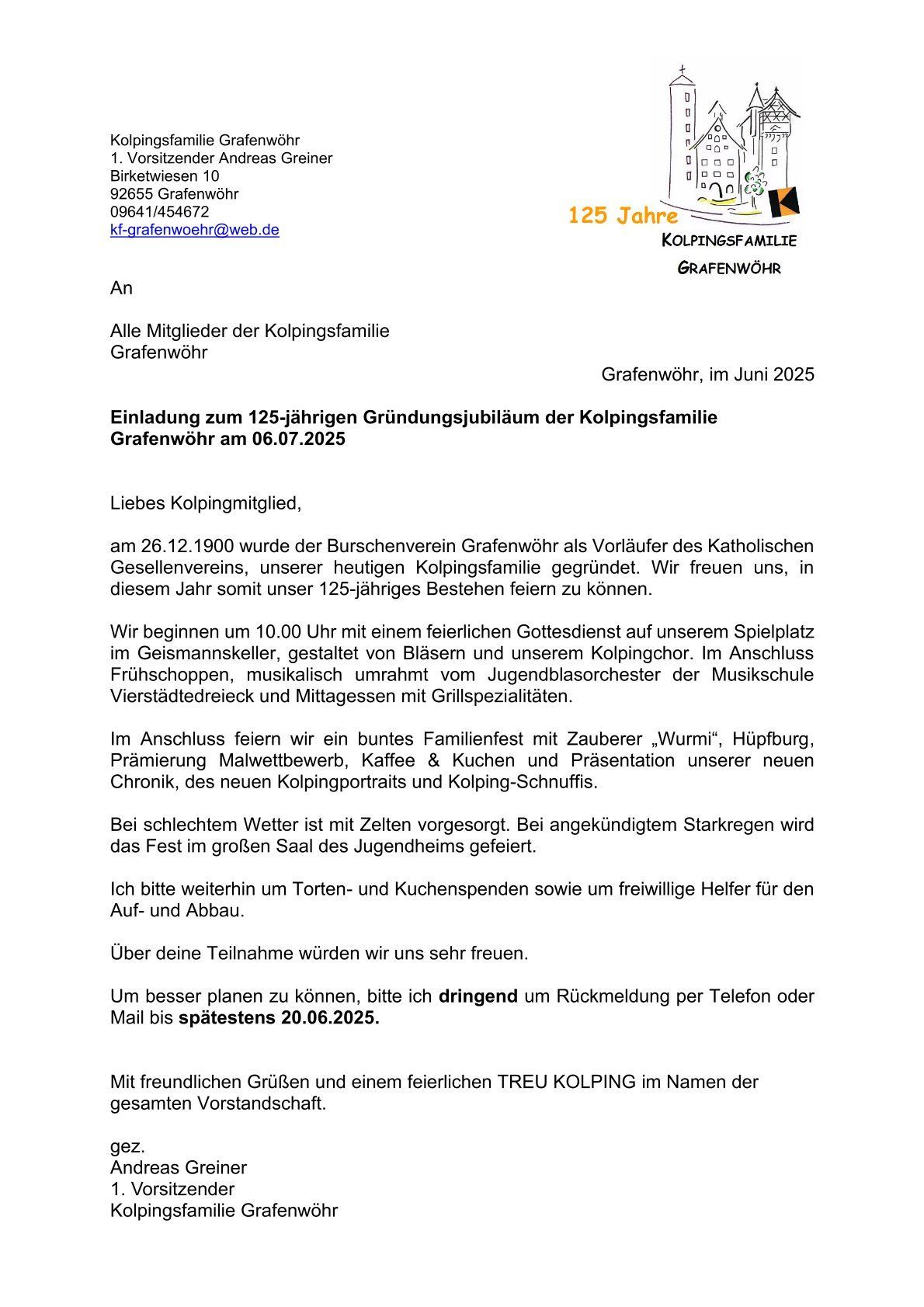 herzliche Einladung zum Kolpinggedenktag am Samstag, 22.11.2025. Beginn mit feierlichem Einzug in die Friedenskirche (Treffpunkt am Haupteingang um 17:50 Uhr) und Gottesdienst, gestaltet vom KOLPING-Chor zu unsrem 125-jährigen Jubiläuum bzw. zum 175. Geburtstag des Kolpingverbands Deutschland.
