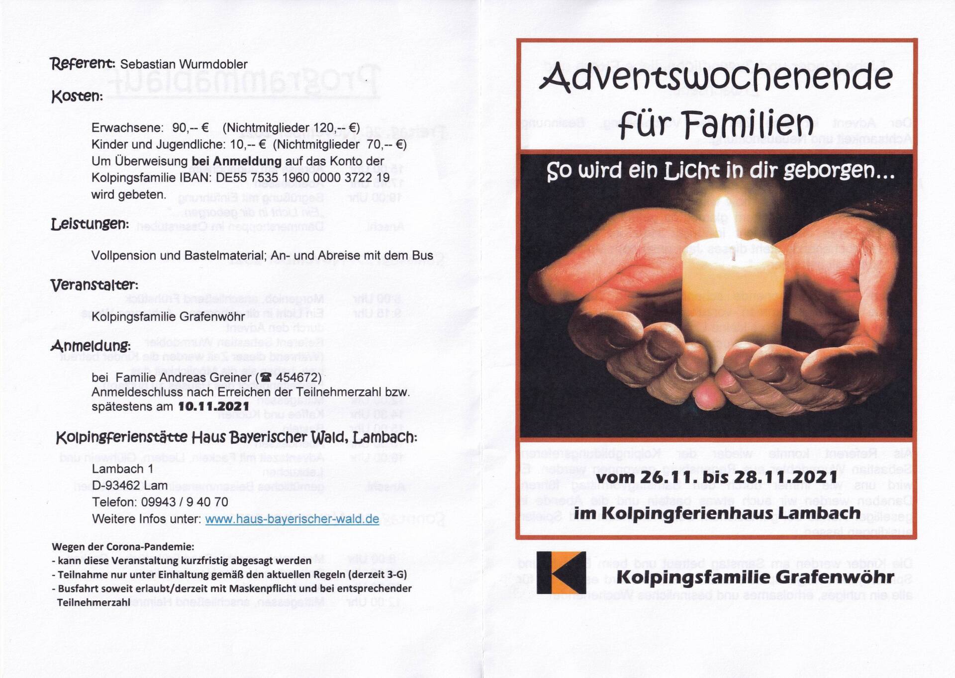 Adventswochenende für Familien vom 01. bis 03.12.2023 in Lambach