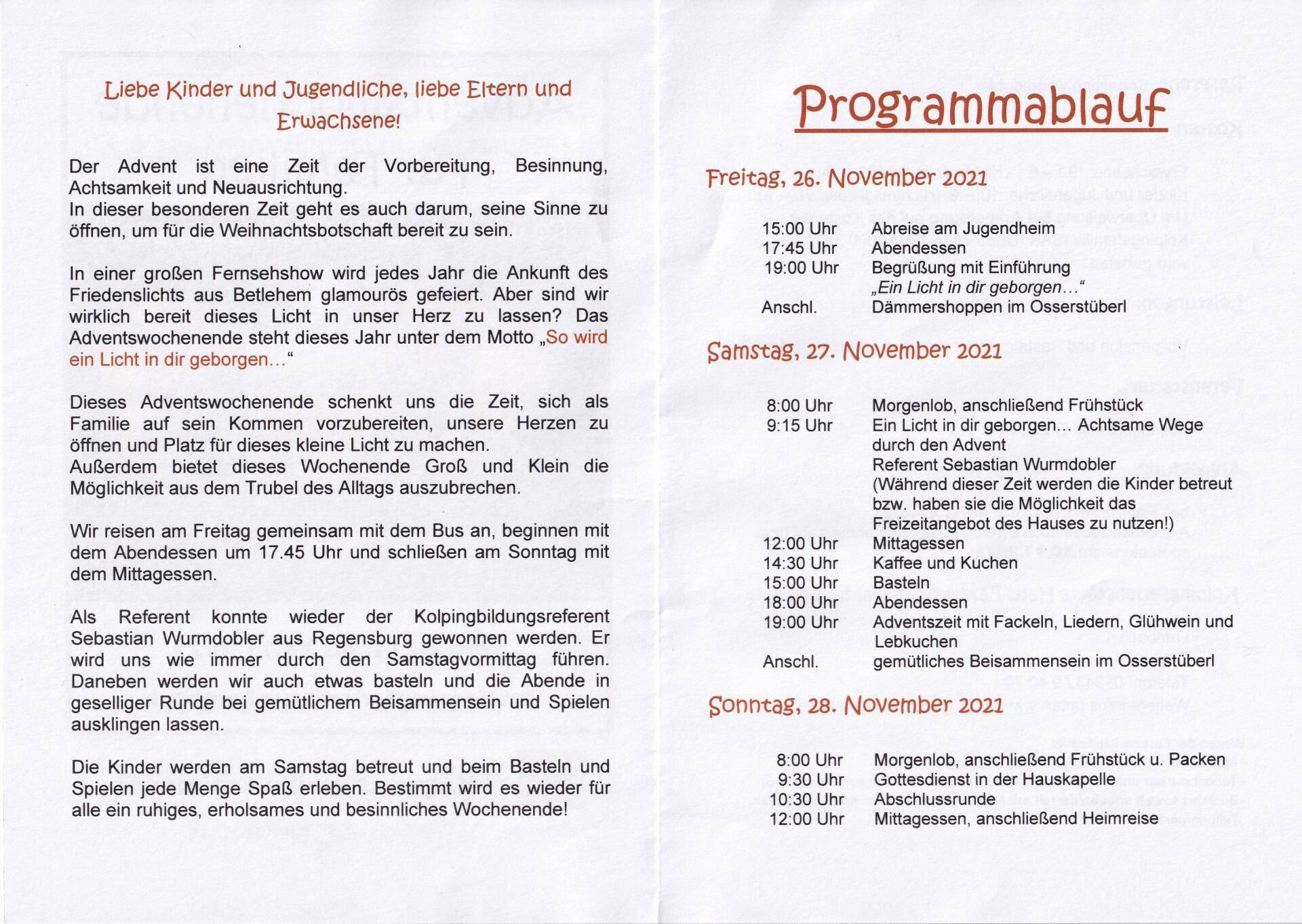 Familienwochenende in Lambach 26.11.2021 - 28.11.2021
