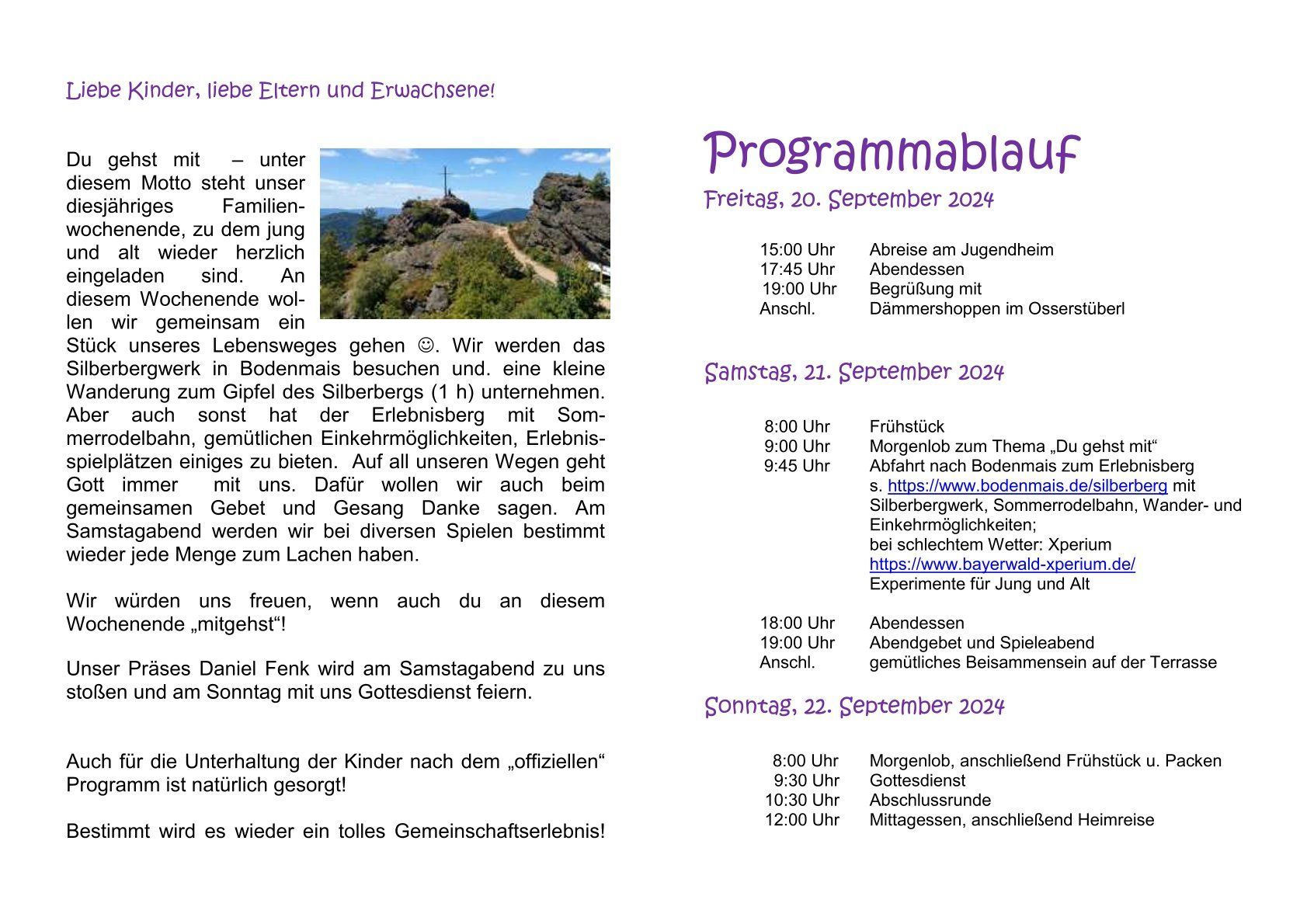 Familienwochenende in Lambach 20.09. - 22.09.2024