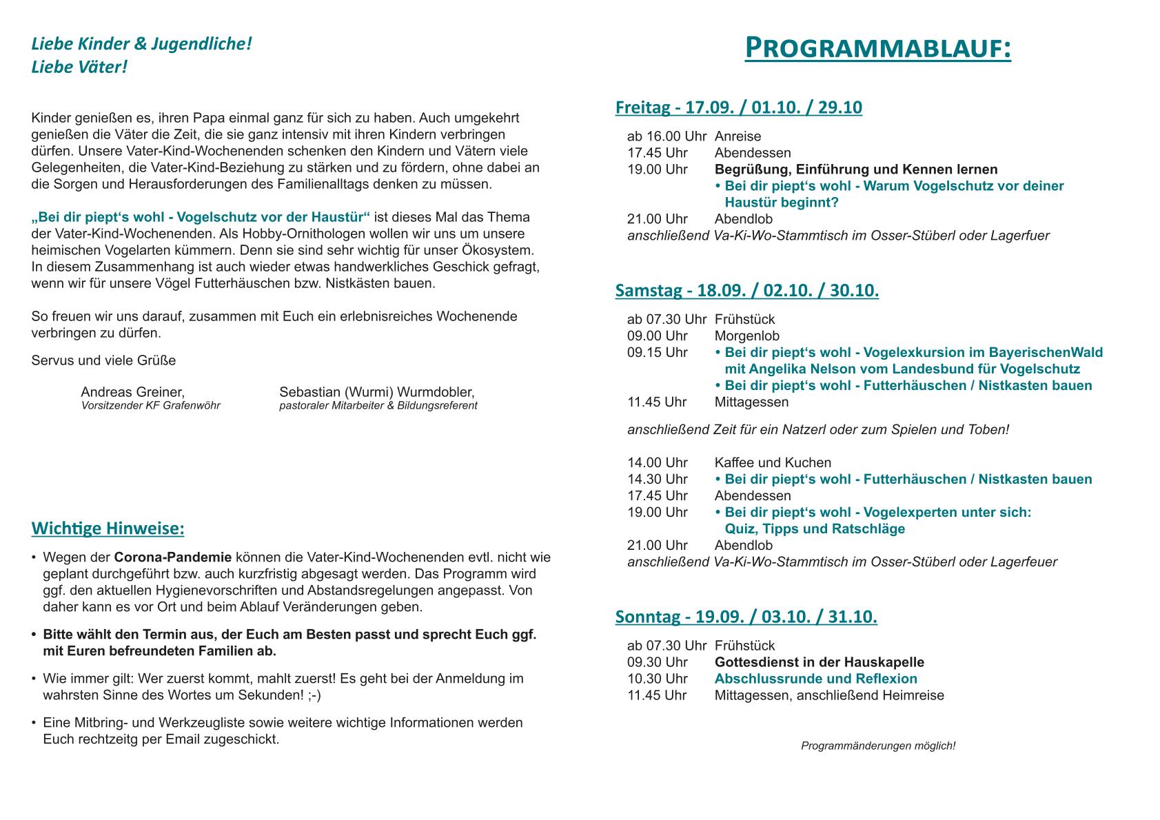 Vater-Kind-Wochenende in Lambach 17.09.2021 - 19.09.2021
