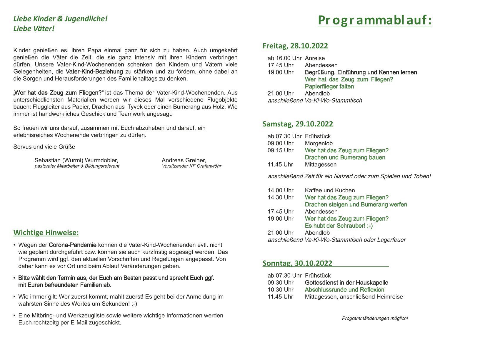 Vater-Kind-Wochenende in Lambach 28.10. -30.10.2022